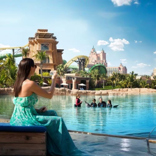 The Palm in Dubai offers an unforgettable experience to interact with dolphins. Whether you choose to swim, touch, or observe, Dolphin Bay provides a range of interactive programs suitable for all ages. Set in a picturesque location, visitors can enjoy the thrill of being in the water with these intelligent and playful creatures while learning about their conservation. With trained staff ensuring the well-being of the dolphins, Dolphin Bay promises a memorable and educational experiences The Atlantis Aquarium experiences also provide a unique and awe-inspiring journey into the wonders of the ocean, blending entertainment, education, and conservation in a captivating way.