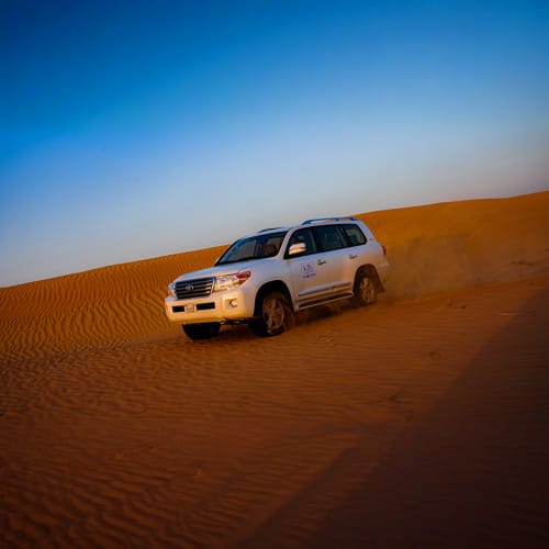 Discover the essence of Dubai or the UAE with our captivating desert safari tour. Immerse yourself in the timeless charm of the desert as you embark on an adventure unlike any other. Experience the thrill of dune bashing in a 4X4 Land Cruiser, with sand sweeping around you as you cascade down steep sand dunes. At our desert campsite, soak in the ambiance of a traditional Bedouin-style tent and engage in a variety of activities, from camel riding to enjoying flavored shisha and sipping on authentic Arabic coffee. Be captivated by mesmerizing performances of belly dance and Tanura dance under the starlit sky. Capture stunning moments against the backdrop of the desert, especially during the enchanting sunset. Try on traditional costumes, adorn yourself with henna tattoos, and indulge in a delicious buffet dinner featuring a spread of Arabic delicacies. Conclude your desert safari tour with cherished memories as you are transported back to your accommodation. Don't miss the chance to experience the magic of the desert and create unforgettable moments during your visit to Dubai or the UAE.
