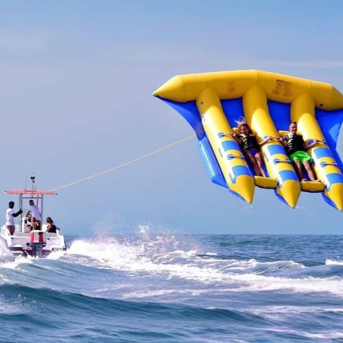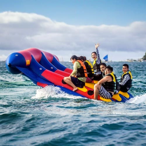 Fly Fish Tour from us is fun, entertainment and adventure packaged into a single activity. Mainly a step up version of banana boat, Fly Fish is a large inflatable raft boat which moves with the swift pull of a speed boat.