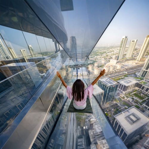 Located atop Address Sky View Hotel, Sky Views from Emaar is three adrenaline-fueled experiences rolled into one, such as Observatory, Sky Slide and Sky Edge Walk. Your standard Sky View Dubai ticket offers access to the Observatory (featuring the most irresistible views over Dubai) and the Sky Slide, which swiftly zips you down through a fully transparent glass tube from the 53rd level to the 52nd level, guaranteeing you the most surreal views of the surroundings.